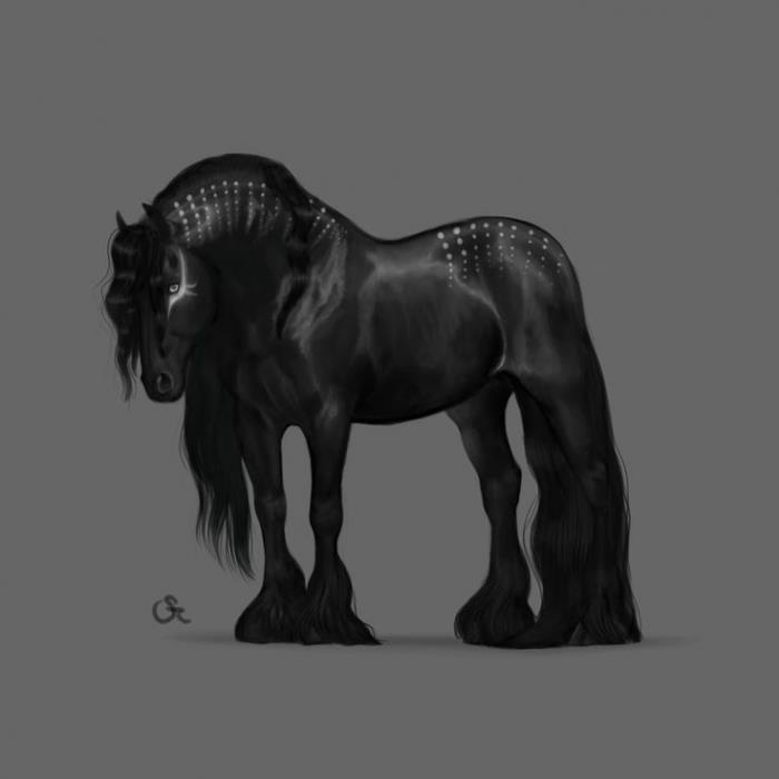 Пока он разглядывал всё вокруг, издалека, к нему прибежала чёрная лошадь. Она была, словно отлита из какого-то металла и создавала гнетущее ощущение, просто от взгляда на неё.