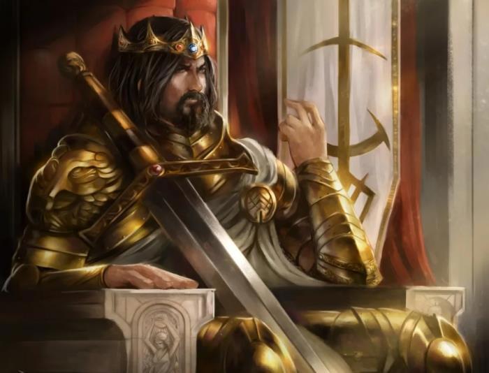 У него были черный волосы с сединой и такая же борода. Карие и мудрые глаза, повидавшие очень многое. Он с гордой осанкой восседал на троне и смотрел на людей перед собой.