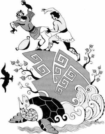 Мужественный и умный Тесей справился и с этим злым великаном и столкнул его самого в море.