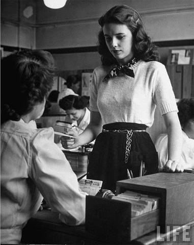 Пристраиваюсь позади Дженифер, стою, жду. Получив книгу она уходит и садится за стол. Теперь мой заказ.
