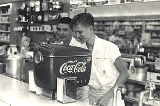 Аптека пятидесятых в США это что то с чем то. Выглядело все примерно так.