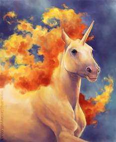 Как можно быстрее одевшись, я отправился на выход. У входа, где и сказал профессор, меня уже ждал мой скакун. Белая лошадь, с огненной гривой и хвостом. По всему телу блуждают огненные всполохи. На лбу у нее выделятся длинный, с две ладони, рог.