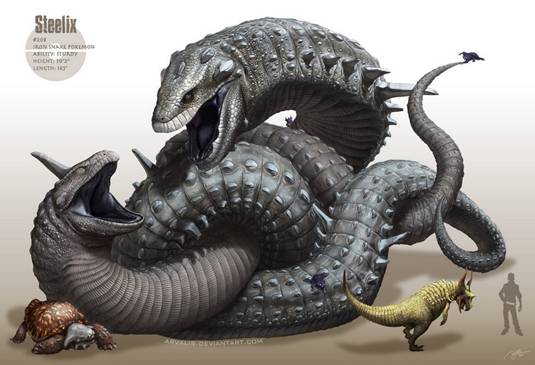 Второй покемон имел большее, в диаметре, тело, что было покрыто металлическими шипами, и на голове у него отсутствовал рог. В магическом плане стало очевидно, что это эволюция оникса. Вот только у оникса нет официальной эволюции. Точнее не было. У обычного оникса было ядро каменного типа, располагавшееся где-то под головой, все его тело наполняла земляная энергия, кожу покрывали каменные пластины, что, как и рог на голове, содержали очень плотную каменную энергию. Энергетика второго покемона была похожа, но отличалась типами. Его ядро было темно-серого цвета. Стальной тип. Тело также заполняла земляная энергия, а вот кожа, и все шипы на ней, были наполнены стальной энергией.