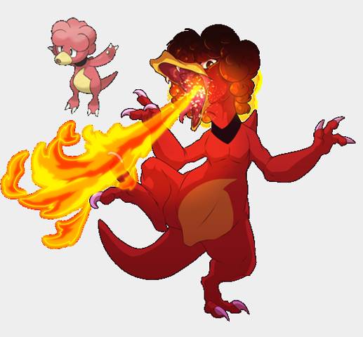 Я спрыгнул с него, и побежал в сторону магби. Зайдя за камень, я получил струю пламени в лицо, сопровождаемую «грозным» ревом. Заблокировав атаку туманом, я остановился, пристально всматриваясь в магби. Маленькая красная рептилия, с утконосьим клювом. На голове клубилась лава, напоминая при этом какую-то кудрявую прическу. Он испускал не слабый жар, смотря на меня с угрозой. Вот только из глаз все еще стекали потоки слез… из магмы. У них довольно странная анатомия…