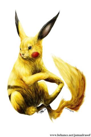 Небольшой желтый грызун с красными кругами на щеках и черными ушками, напоминающий нечто среднее между белкой, кроликом и мышью, появился из красной вспышки покебола.