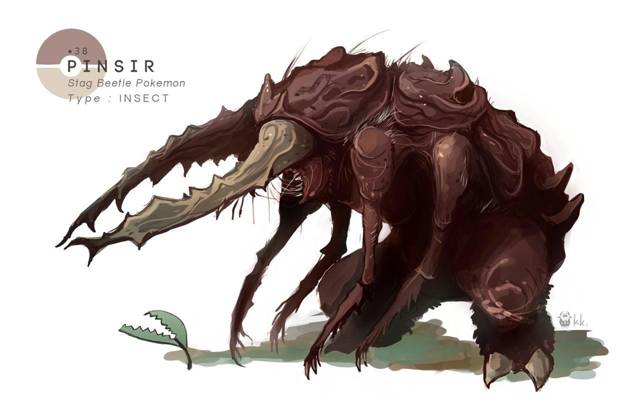 Не успели мы пройти и десяти метров, как позади раздался рев. Обернувшись, я увидел, как на нас несется огромный коричневый жук, со страшными даже на вид жвалами, торчащими из его головы. Пинсир, но довольно слабый. Обычно они намного больше. Жвала у этого жука выглядят потрескавшимися, и хитин довольно тусклый, будто его тренер совсем не ухаживает за покемоном.