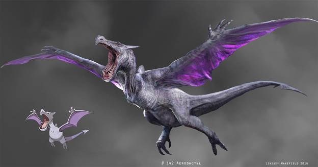 Не долетев до нас нескольких сотен метров, из дирижабля выпрыгнул человек, который в полете призвал покемона, и, оседлав его, полетел в нашу сторону. Когда тот был достаточно близок, я смог распознать в его покемоне аэродактиля – покемона относящегося к классу ископаемых. Внешне тот напоминал серокожего динозавра, с большими фиолетовыми перепонками между передними лапами и телом, что выполняли функцию крыльев. Приземлившийся покемон оказался достаточно большим – два метра от земли до кончиков роговых наростов на голове.