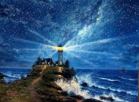 До утеса мы добрались уже ближе к ночи, и сейчас могли лицезреть потрясающую картину: маяк выглядел словно яркая звезда на фоне ночного неба.