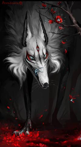 – Пфр, – резкий выдох развеял стоящий стеною туман, показав тонкую черную волчью лапу. Подняв голову, я увидел узкую морду белого волка, украшенную тремя бирюзовыми глазами с красными белками. Проведя раздвоенным, как у змеи, синим языком по ряду белесых зубов, существо сделало шаг вперед, продолжая сверлить меня голодным взглядом.