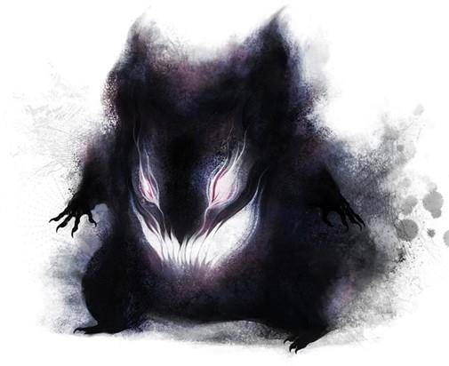 Монстр с нетерпением облизывался, глядя на будущую закуску, но всё продолжал дожидаться последнюю, самую аппетитную цель. Однако вместо того, чтобы выплюнуть тот бурдюк с питательной сущностью, о котором ранее поведали ему братья, тень на полу исказилась, начав принимать форму пары выглядывающих из неё голов. Вместо лиц, у них были белые, постоянно расплывающиеся разводы, напоминающие скалящиеся пасти с парой глаз, при этом все остальные черты лиц были сильно размыты. Они словно состояли из искаженной черной дымки, что постоянно перемещалась, не в состоянии долго находиться в одном положении.