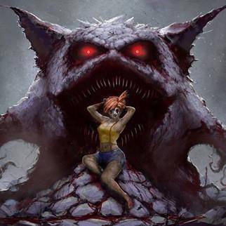 На последнем этаже башни, в большой округлой комнате, обитой посеревшим от времени деревом, бывшей когда-то хозяйской спальне, судя по огромной, едва не разрушившейся от времени кровати, лежал огромный белый монстр, с удовольствием ковыряя чем-то между своих острых, слегка желтоватых зубов, что плотным частоколом заполняли его широкую пасть. Комната была освещена лишь одним единственным окошком, расположенным чуть ли не у самого потолка, из-за чего монстра было едва видно. Белая потрескавшаяся кожа покрывала толстое, бочкообразное тело, большую часть которого занимала огромная пасть и пара черных глазниц, внутри которых медленно тлела пара красных угольков – зрачков чудовища. Короткие толстые лапки, которые едва могли бы позволить такой туше перемещаться в пространстве, да пара широких, напоминающих кошачьи, ушек украшали его тело. Монстр вольготно развалился на хозяйской кровати, которая даже не замечала его веса, что странно, учитывая его огромные размеры.