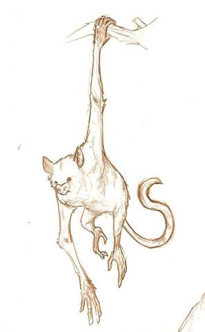 Повернув голову, я увидел свисающего с самой верхушки дерева покемона-примата. Он обладал густым белым мехом, правда сильно испачканным в грязи и пыли. Морда его более всего напоминала мордашку летучей мыши: такие же забавно оттопыренные уши, мелкие черные глазки, и большой, рыло-подобный нос, ноздри которого сейчас активно шевелились, пока сам покемон крайне заинтересованно взирал на лежащие на столе продукты.