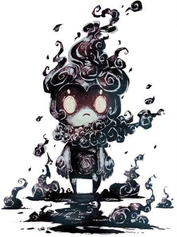 Посреди арены, всего в паре метров от девушки, прямо из пола выросла невысокая призрачная фигура. Маленький мальчик с темно-серой, местами даже черной кожей тяжело дышал. Его огромные круглые глазницы пылали белым огнем, ловя каждое движение блондинки, принесшей ему неимоверные страдания. Черный дым клубился на его непропорционально большой голове, плавно переходя на шею, отчего казалось, что призрачный кудрявый мальчик был плотно укутан черным развевающимся на ветру шарфиком. Вместо рук у призрака зияла пара сочащихся черным дымом обрубков, в то время как отсеченные блондинкой конечности медленно развеивались в пространстве позади девушки.