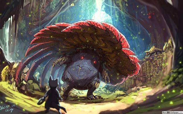 Призванного Эрикой вайлплюма никак нельзя было назвать обычным грибом. Огромная серокожая образина с короткими конечностями, покрытыми странными желтыми наростами, что формировали самые настоящие когти и шипы, практически полностью была скрыта под сегментированной грибной шляпкой. В отличии от обычного представителя покемонов-грибов этого вида, шляпка этого чудовища была разделена не на шесть фрагментов, а на много большее их количество, так что и сосчитать толком не выйдет. При этом каждый сегмент был подвижен, и скорее напоминал широкую мицелиевую ленту, слегка изогнутую и плотно прижатую к соседнему сегменту, чем просто часть грибной шапочки.