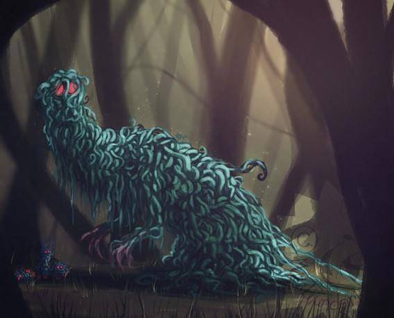 С незримым шелестом на поле боя появилась огромная куча переплетенных меж собой бледно-зеленых лиан, покрытых редкими листочками и колючками. Бесформенная масса стремительно оживала, вытягиваясь кверху, и формируя пару длинных конечностей, оканчивающихся покрасневшими, видимо от содержащегося в них яда, огромными колючками, растущими на манер когтей.
