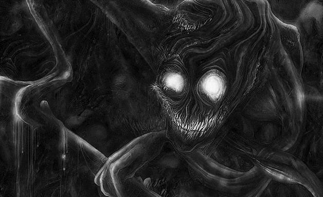 Прямо посреди лаборатории, затрагивая и пол, и столы, и всевозможные механизмы, сама собой сформировалась огромная тень, откуда медленно выплыл монстр. Словно дымное облако, непрерывно перетекающее из формы в форму, а посреди него горела пара фонарей, да блестела белесая пасть из частокола острых зубов.