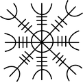 Есть «шлем ужаса» (ægishjálmur). Его чертили свинцом поперёк лба у себя между бровей, как показывает эта формула: