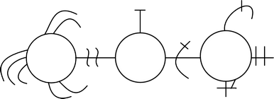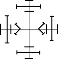 Наконец я назову здесь три знака: ginnir, молот Тора (Þórshamar) и ausukross – и приводятся рисунки двух первых из них. Мне неизвестно, для чего использовались два вышеназванных, но ausukross причиняет болезни и многое плохое тем, кому его вырезают. Он получил название, вероятно, из-за своей формы, ибо он словно рунический знак sólс поперечной чертой над основанием, вот так: