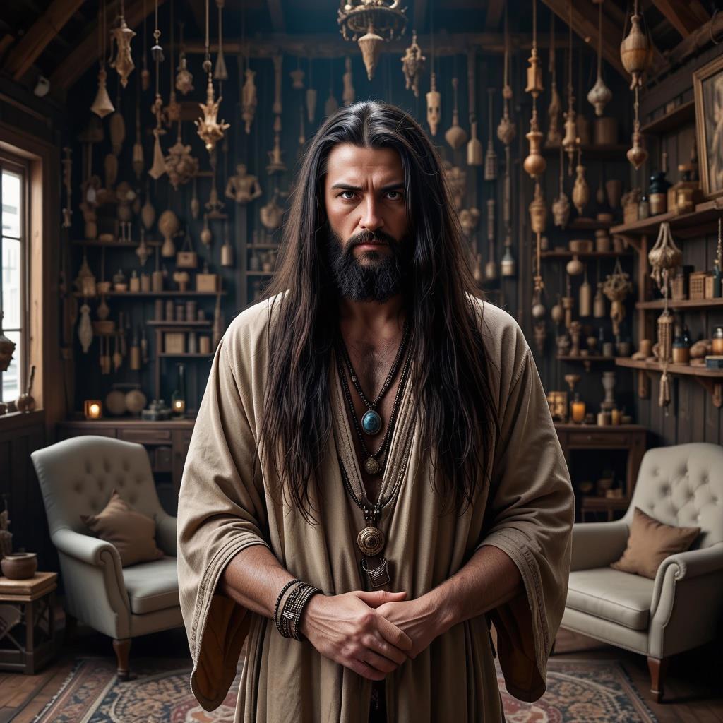 Хозяин был сродни кабинету. Экзотический образ с обилием амулетов и различных аксессуаров, свободная одежда спокойных тонов и тёмные длинные волосы навевали ассоциацию с американскими индейцами. Но стоило заглянуть в глаза – типично русские, то иллюзия сразу рушилась. И сколько парень не пытался, уже не получалось вернуть первое впечатление.