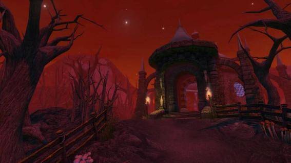 Закончив с мятежным Храмом, я телепортировался в Темнолесье, чтобы разобраться с другим культом. А Часовня Скорма расположена недалеко от торгового лагеря, и примечательно, по мере приближения к этому месту, небо стало окрашиваться кроваво-красным. Здесь тоже есть концентрация магии, но в отличии от Храма Аво, тут огромное количество демонической и темной Воли.