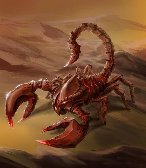 Песок под ногами зашуршал и затрясся. Из под груды зыбучей породы вылез огромный скорпион, почти десять метров в длину.