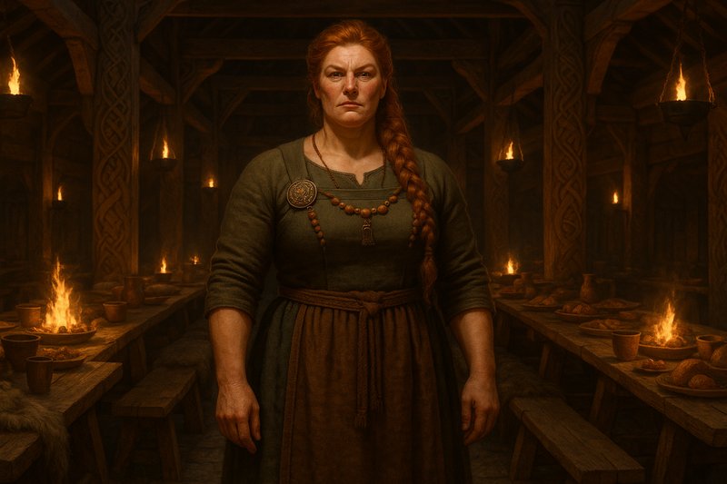 Его жену звали Ингазной. Отвратительное имечко, как и у многих здесь. Что о ней сказать то? Как Хасан клюнул на эту обворожительную женщину с очень… выделяющимися формами даже среди местных? Она была типичной викинговой вдовой – высокой, статной, с густыми рыжими волосами, заплетенными в сложную косу, и спокойными, уверенными движениями. Она не была красавицей в современном понимании, но в ней чувствовалась сила и достоинство. Она кивнула мне, когда я сел, и в ее глазах я не увидел ни презрения к рабу, ни подобострастия к лекарю. Только ровное, спокойное любопытство.