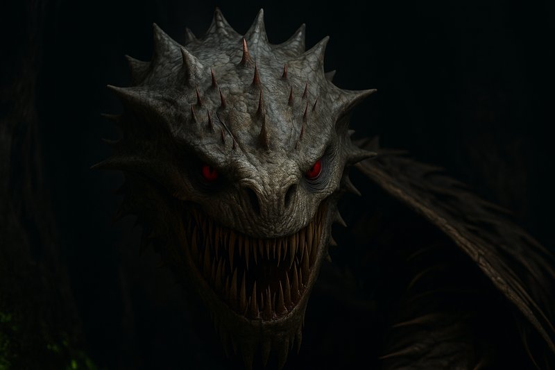 Я замер, боясь дышать. Я обосрался бы от ужаса еще раз, но, кажется, уже было нечем. Огромная, круглая, шипастая голова медленно опустилась к нам. Белые глаза, размером с три моих головы каждый, казалось, смотрели прямо сквозь меня. Из ее пасти, полной вращающихся (!!!) рядов зубов, вырывался пар с запахом крови и гнили.
