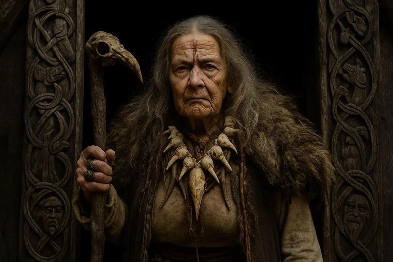 За ее спиной маячили четыре вооруженных викинга, которые вошли следом и встали у входа, положив руки на рукояти топоров. Смотрели на нас так, будто мы в любой момент могли наброситься на эту старуху. Интересно, что она собиралась делать?