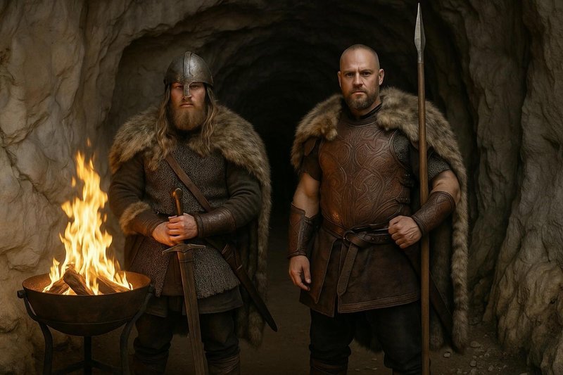 Пара викингов, которые, видимо, были охранниками шахты, зажгли от жаровни у входа несколько факелов, и мы двинулись вглубь горы.
