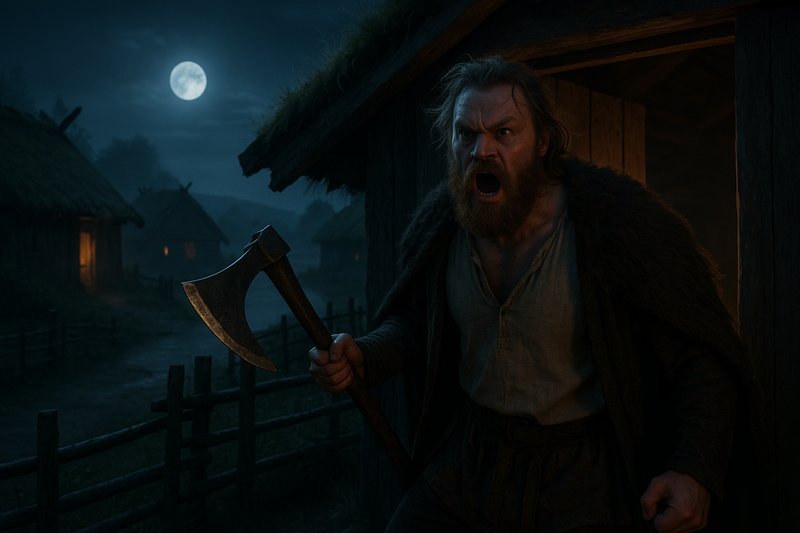 Прошла, казалось, целая вечность, прежде чем за дверью послышалась сонная возня, ругань и скрип тяжелого засова. Дверь с грохотом распахнулась, и на пороге появился заспанный, разъяренный, бородатый викинг с огромным двуручным топором в руке.