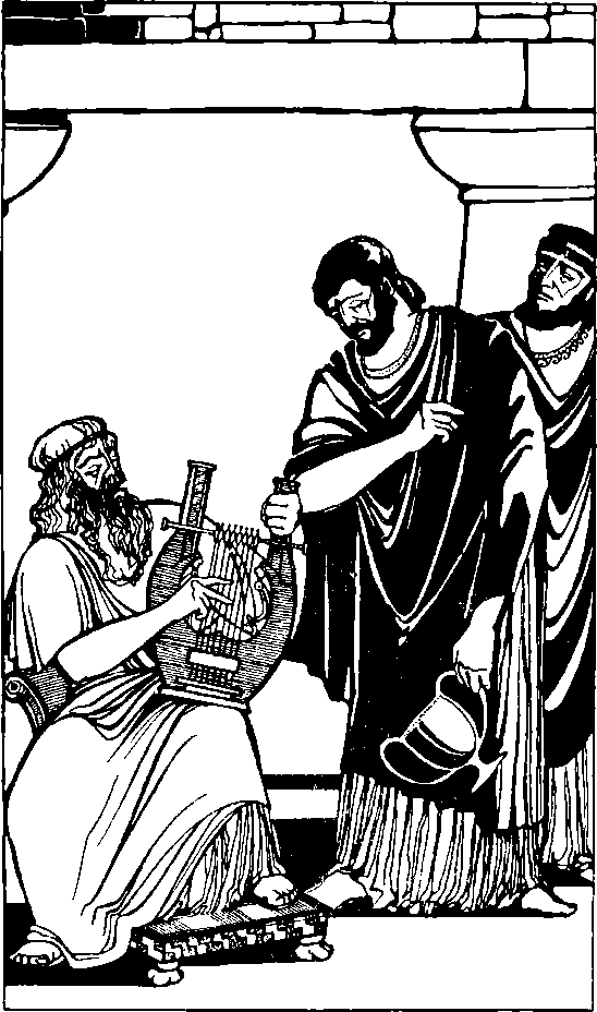 Демодок внимательно прислушивался к голосу Одиссея. Не слышал ли он когда-то этот голос? Певец взял в руки лиру; молча, задумчиво перебирал он струны и, наконец, запел.