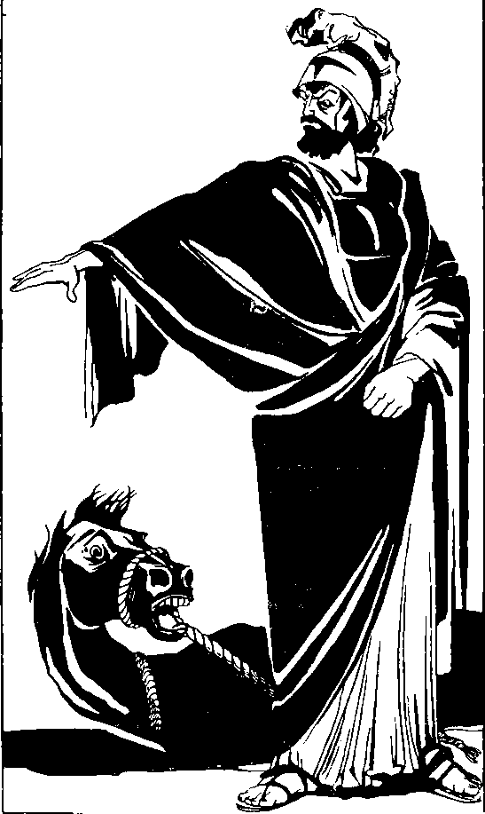 [Закрыть] кутаясь в косматую мантию. За ним легким шагом шли все женихи Елены. Следом кучка глашатаев вела белого тонконогого коня.