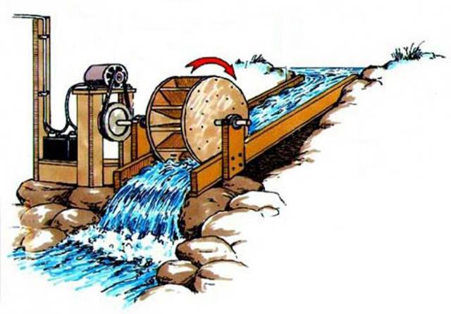 Только Виктор об этом сейчас не думал. Взяв четыре длинных клина, он прибил механизм к платформе, а затем прикрепил к нему небольшое водяное колесо, сделанное плотниками, как и вся платформа для генератора.