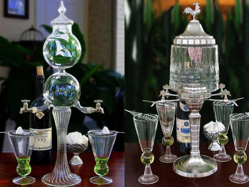 Он махнул официанту, но тот передал бразды правления дюймовочкам. Девушки захлопотали: одна водрузила кусочки сахара на специальные ложки, другая стала поливать их абсентом, наполняя сосуды изумрудной жидкостью. Разлила четко по линии, разделяющей два полушария, маленького и большого, из которых состоял бокал. Я ждал, что вспыхнет спичка, загорится сахар, распространяя аромат жженой карамели. Но нет, бокалы были установлены под краниками – из них медленно стала капать ледяная вода, постепенно меняя цвет напитка на желто-белый. Запах разнотравья прорвался сквозь анис, забивавший весь букет.
