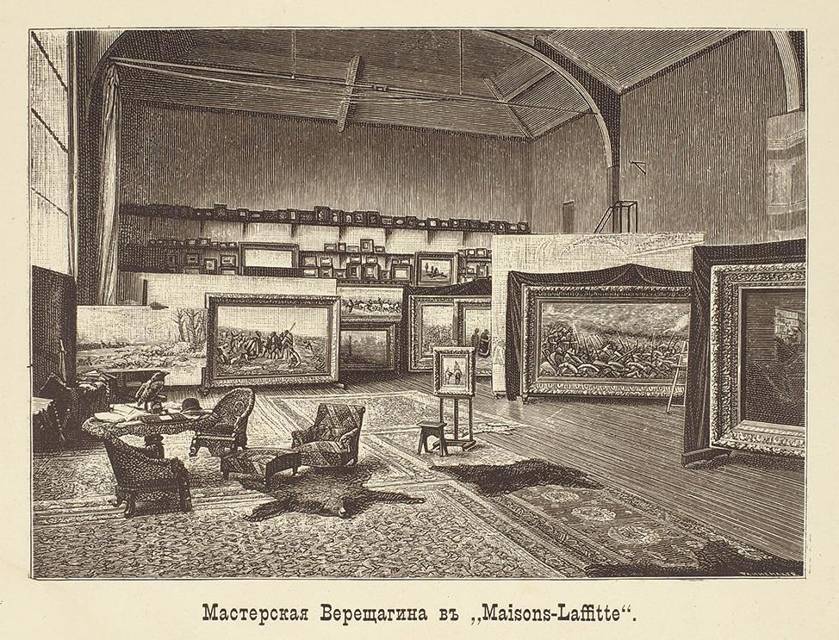 Дом в предместье Мэзон-Лаффит семейство Верещагиных называло дачей. Небольшое строение-коробка белого цвета архитектурными изысками не блистало, но при нем были устроены две мастерские для работы Василия Васильевича – летняя с закольцованным рельсом и специальной кабиной и просторная зимняя. Здесь он творил, работая над большим полотном, посвященным третьей атаке Плевны. Моросивший на улице дождь не был ему помехой – свет поступал сквозь огромную 25-метровую стеклянную стену.