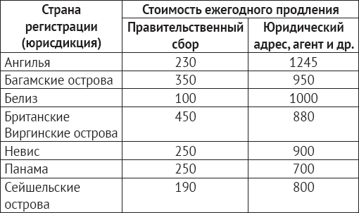 Какова стоимость ежегодного продления в наиболее популярных юрисдикциях? (все цены указаны в USD).