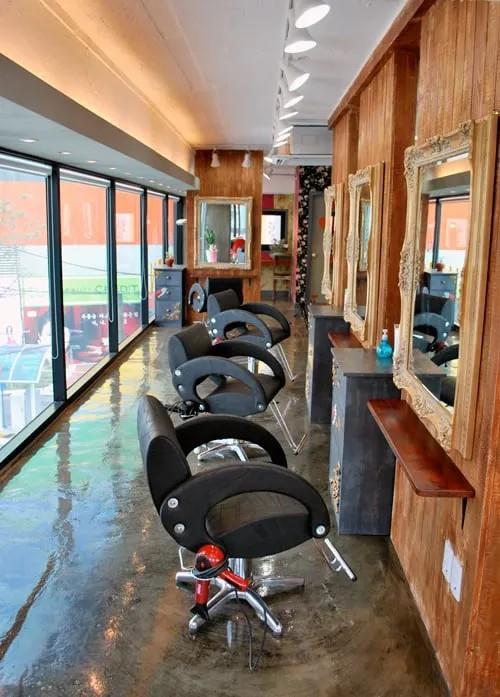 Сама парикмахерская расположилась на третьем этаже и была довольно примечательной. Спроектирована она была так, чтобы напоминать крупный город, такой как Нью-Йорк или Лондон, с большим пространством, где размещены несколько стульев и зеркал, которые расположены близко друг к другу, чтобы клиентам было легче общаться с друзьями, пока делаете прическу.