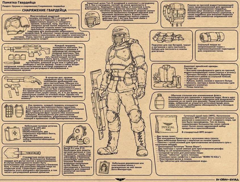 Что же, в таких вопросах всё решали сами планетарные губернаторы, которые и создавали эти полки. Ну а Империум уже решал кто из них эффективнее в тех или иных ситуациях. Так или иначе любой гвардеец являлся довольно универсальной и взаимозаменяемой единицей, которая не будет спрашивать «А где тут предохранитель?», когда ему дадут в руки огнемёт, мельта-пушку или приставят к роте огневой поддержке. В этом плане, несмотря на свою архаичную тактику массированного наступления, Криг являлся во всех смыслах крайне профессиональной армией.