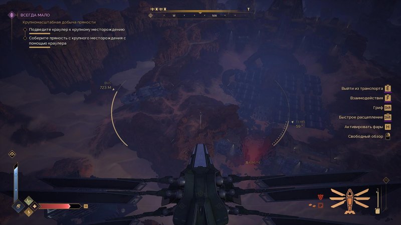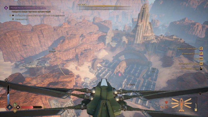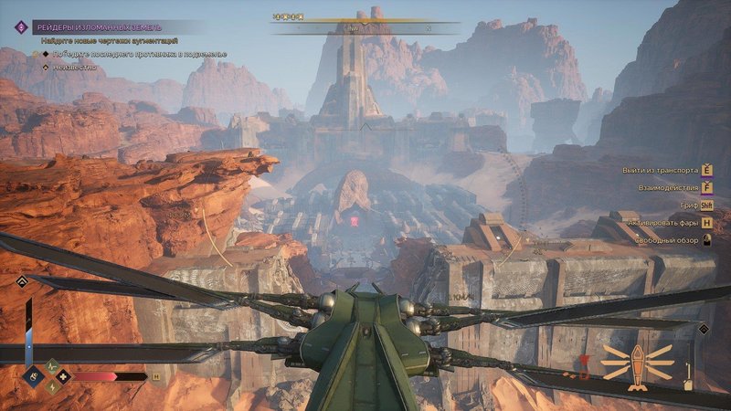 Еще через час полета приблизились к нужным координатам. Переведя двигатели в режим планирования и начал плавное снижение, лавируя между высокими каменными грядами.