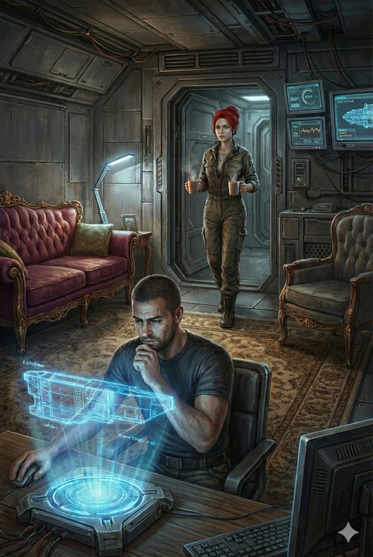 За две недели мы превратили этот салон в подобие дома. Гарь выветрилась, сменившись стерильным запахом озона. Мы перетащили сюда лучшую мебель из уцелевших кают: глубокие бархатные диваны, тяжелый стол из полидерева, даже ковер с густым ворсом, который теперь глушил звон шагов по металлической палубе. Это была странная смесь дворца и бункера – инкрустированные кресла соседствовали со стойками для лазерных резаков, а на стене, вместо пейзажа Каладана, висел монитор сейсмоконтроля.