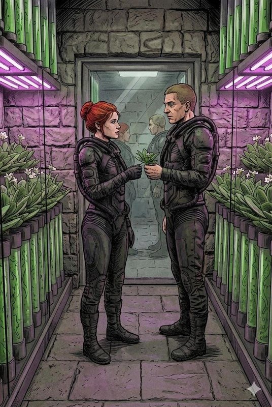 Стеклянная панель отъехала с тихим шипением. Я протянул руку и сорвал лист. Это была зубчатка – местное растение, чьи семена чудом сохранились при крушении. Одно из немногих и самое простое и быстрое в выращивании. Жесткое, горьковатое, но съедобное.