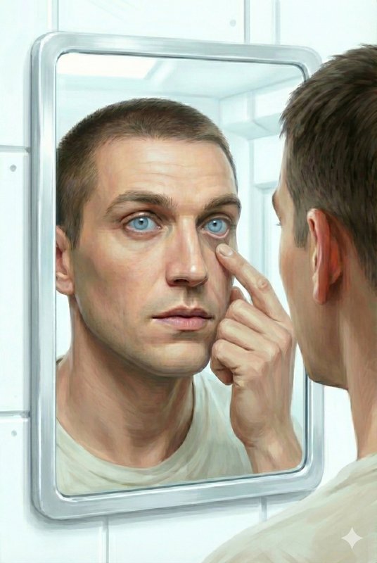 Они приобрели оттенок старого фарфора, подсвеченного изнутри синим неоном. Это была не просто краснота от усталости или желтизна от плохой печени. Это был глубокий, перламутровый индиго, который словно просачивался сквозь ткань глазного яблока.