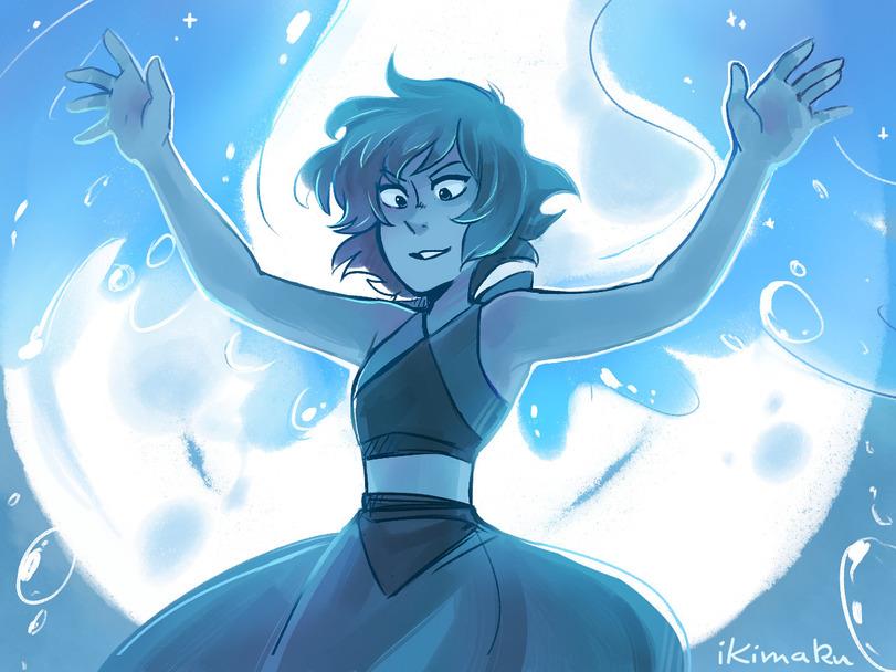 Прямо из сгустка света появилась красивая девушка. У нее было стройное тело и синяя кожа, так же синее платье. А дефект ее камня выражался только в искаженных глазах, похожих на два треснувших зеркала. Только появившись, Ляпис тут же рухнула на колени. Тысячи лет она провела без формы и уже даже не помнила, как нужно двигаться, тем более что это тело было дефектным.