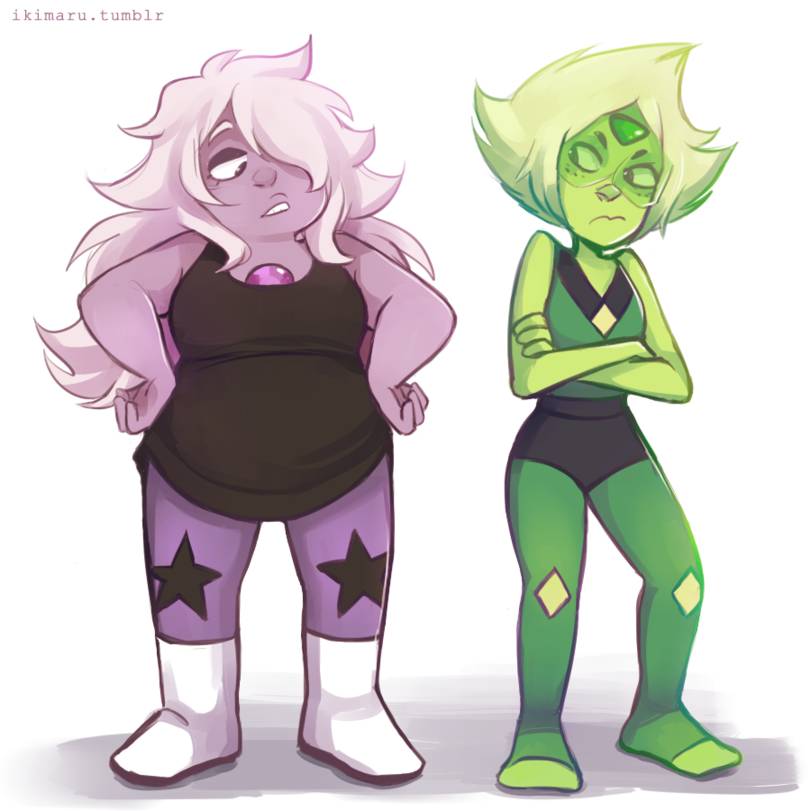 – Оу, Перидот, не будь такой эгоисткой. – Усмехнулась Аметист. – Давай сначала поможем Стивену расслабиться…
