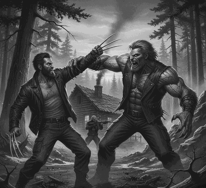 Влетев в хижину вместе с Виктором, Логан не дал брату и секунды на передышку. Они проломили массивный обеденный стол, разнесли в щепки стеллажи с запасами. Саблезубый, усиленный адамантием и химией, пытался перехватить инициативу, нанося сокрушительные удары по голове Логана. Обычный человек погиб бы от первого же такого выпада – череп бы просто лопнул. Но Логан лишь мотал головой, разбрызгивая кровь, и продолжал вгрызаться в Виктора.