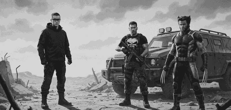 Касл и Логан стояли у капота. Два ветерана бесконечной войны. В тусклом свете фар они выглядели как ожившие памятники насилию: первый это олицетворение неумолимого человеческого гнева, другой же, представитель бескомпромиссной звериной ярости. Два реликтовых хищника стояли плечём к плечу между ними лишь было молчаливое признание, здесь не было места слащавому героизму, тут было место тем кто научился выживать там, где умирает сама надежда…