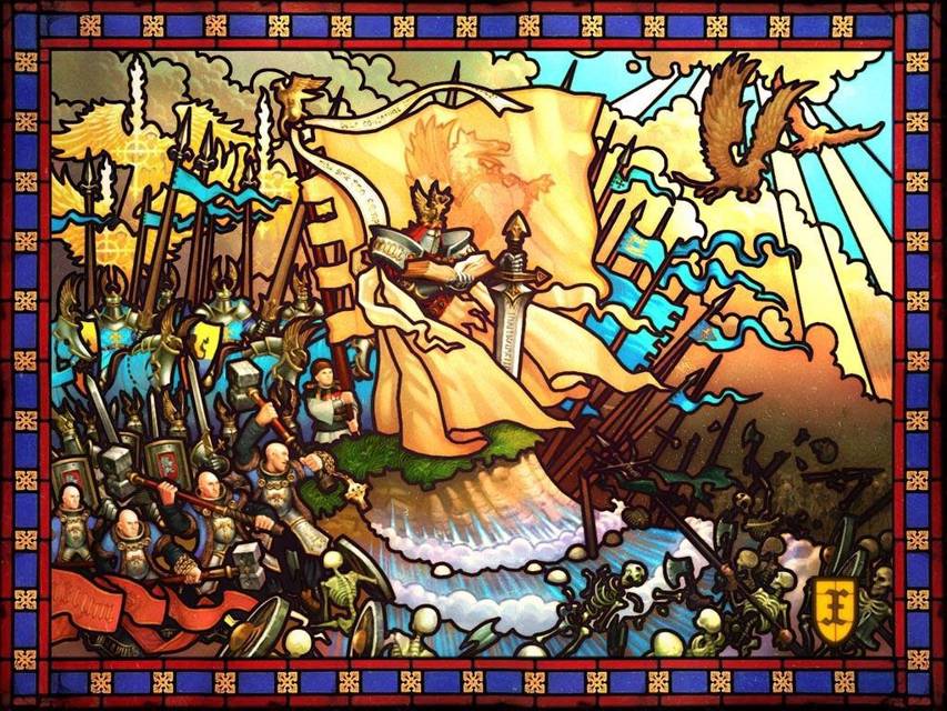 – Паладины это лучшие воины нашей святой империи. – Сев рядом со мной начал рассказ епископ, показав пальцем на витраж собора. На нем изображался рыцарь, в сияющих доспехах, из-под ног которого текла вода, смывая орды нежити, которых также громили инквизиторы, а сзади развевалось знамя империи, летали грифоны и стояли ровные ряды паладинов и ангелов. На последних двух священник и показывал. – Они с детства проходят суровые испытания в своих орденах, проводя долгие годы в тренировках и молитвах. Благодаря этому они могут с лёгкостью рассекать войска демонов, а их вера дает им способность исцелять любые раны и болезни. – Не сохраняй я образ увлеченно слушающего ребенка, то лишь удивленно присвистнул. Любые болезни. Не хило так. А рак они лечить могут? – Архангелы же это истинные дети Эльрата. Они обладают силой не просто разить его врагов своими мечами, но возвращать назад его чемпионов, если их время еще не пришло.