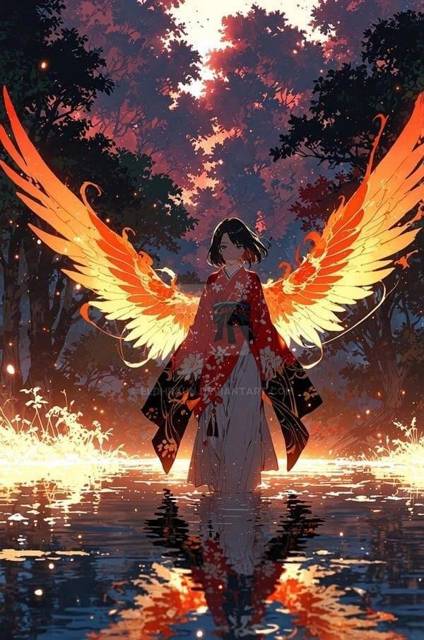 – Ой, совсем забыла… – Смутилась она, прикрыв рукавом нижнюю половину лица, от чего одно из ее крыльев дернулось. Да, да, именно крыльев. Из спины этой «молодой» девочки (хотя Коко чувствовала что в возрасте она может посоревноваться с ее отцом) росли два широких оранжевых крыла, которые расстилались по каменному полу и на них иногда появлялись неожиданные всполохи пламени. Яркие красные глаза, в которых как будто горел настоящий огонь, завершали картину.