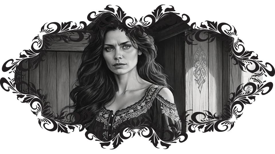 Сперва всё было подозрительно тихо, затем дверь противно скрипнула и отворилась. Странно, но звуков шагов, как и отворяющихся засовов, не было слышно. На пороге возникла высокая цветущая женщина с черными, как ночь, глазами и ярко-алыми губами. Загорелую кожу, напитанную солнцем, едва ли касались мелкие морщинки, придавая незнакомке важности и подчеркивая очарование. Густые черные, как смоль, длинные волосы ниспадали мелкими кудрями, растекаясь по плечам и высокой груди, скрытой за плотной грубой льняной тканью искусно вышитой сорочки. Багровая, как кровь, шерстяная юбка, доходящая ей по щиколотки, была подпоясана широким фиалковым поясом, прошитым белыми косыми линиями, а на ножках красовались ярко-красные сапожки. Красная полоска крупных бусин украшала длинную лебединую шею, доводя чарующий образ до идеала.