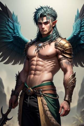 Как вдруг позади послышался шорох крыльев, и передо мной спикировало мощное тело, разодравшее мне рубашку одним касанием когтистой нижней лапы. Я ошалел, в первую очередь от того, что в моей голове грифоны выглядели иначе. Это была гарпия, только мужского пола, выходит… гарпий. Налитые кровью глаза, поверх рук – крылья, оканчивающиеся лапами тело, с острыми когтями. При этом вполне человеческая голова, человеческая грудь и такие же руки, увенчающиеся когтями.